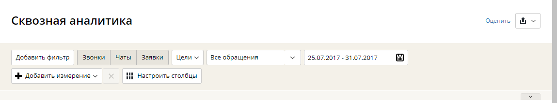 Отчет строится с окном ретроспективы до 180 дней, т.е. отслеживаются сессии посетителя за 180 дней до полученного обращения. Размер ретроспективного окна можно регулировать при помощи специального контрола.