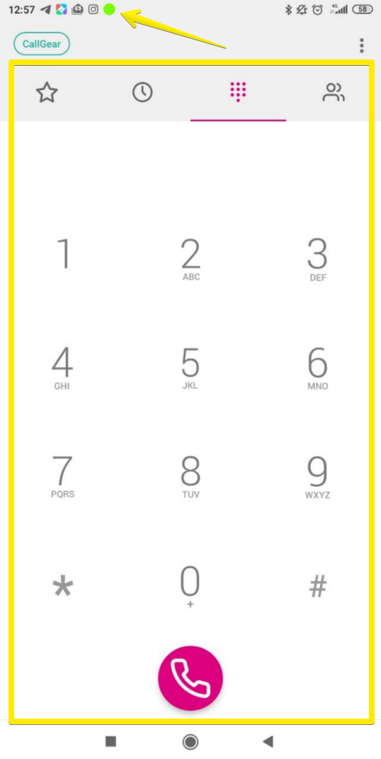 После успешной авторизации откроется панель набора номера, а в строке состояния появится зеленый индикатор регистрации SIP-линии: