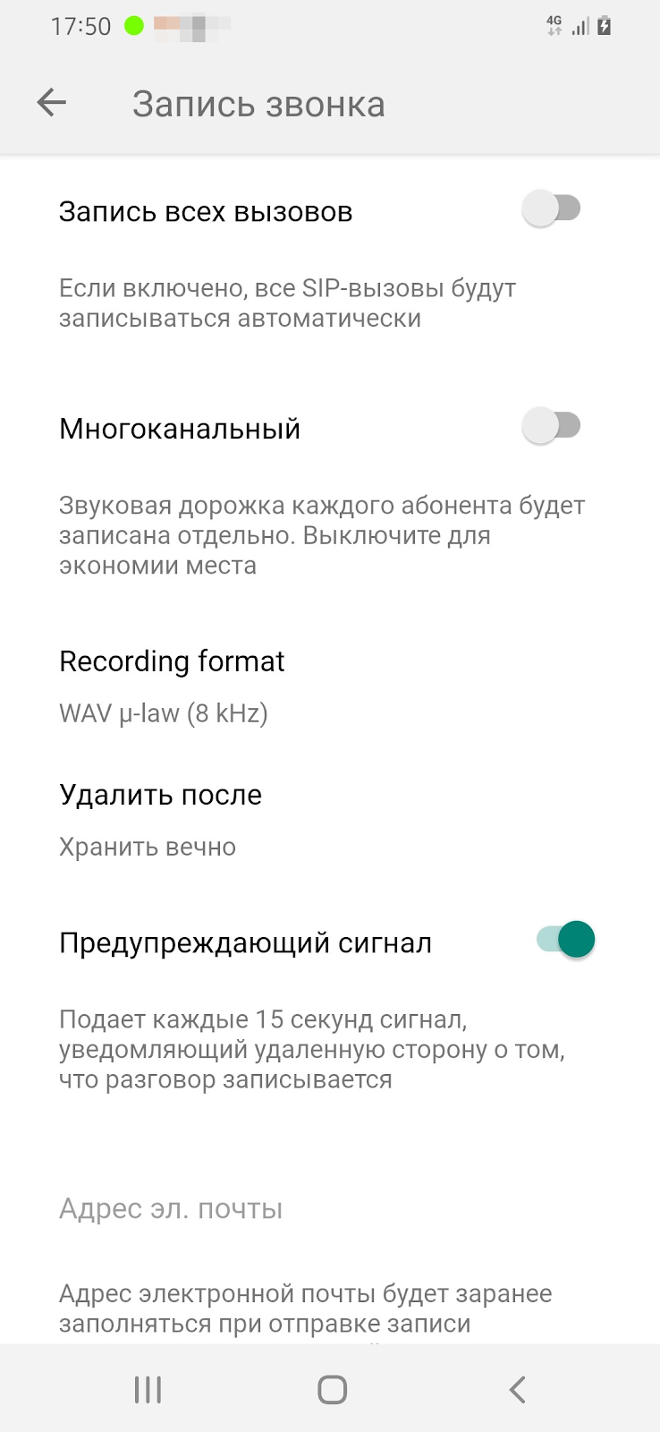 Глобальные настройки записи находятся в меню Параметры - Запись звонка: